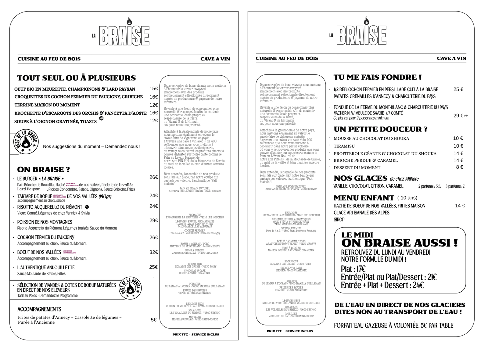 En hiver, comme sur notre terrasse en été, La Braise saura vous servir vos plus beaux souvenirs, directement à votre table.